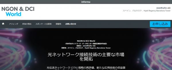 国際会議「NGON & DCI World-次世代光ネットワーク・データセンター間相互接続世界会議」(Informa Telecoms & Media主催)の参加お申込み受付開始 - Dream News