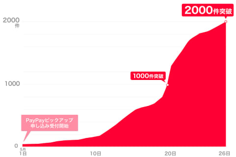 PayPayは、事前注文サービス「PayPayピックアップ」の加盟店申し込み件数が、受付開始から1カ月で2,000件を突破したことを発表した。