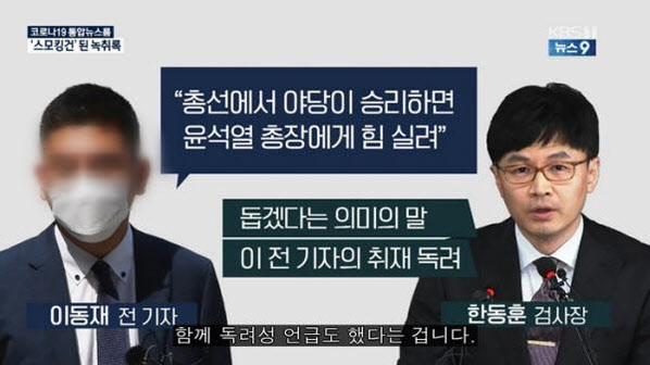 KBS 뉴스9는 지난 18일 “이 전 기자와 한 검사장이 4월 총선을 앞두고 유시민 노무현재단 이사장의 신라젠 주가 조작 연루 의혹을 제기하자고 공모했다는 정황이 확인됐다"고 보도했다. 하지만 19일 이 전 기자 측이 대화 녹취록을 공개하자 “기사 일부에서 정확히 확인되지 않은 사실이 단정적으로 표현됐다”고 사과했다.