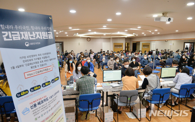 시는 5월 4일 취약계층에 대한 현금지급을 시작으로, 5월 11일부터 신용·체크카드 충전금 신청, 5월 18일부터 읍면동 주민센터를 통한 선불카드 신청 등을 통해 정부의 긴급재난지원금을 지급했다.