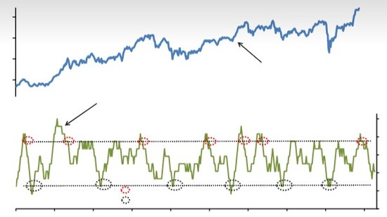 ただし、強いトレンドが生じている場合は余熱・モメンタム(勢い)が生じやすく、オシレーター分析の特徴として売りサインが早めに出やすい。そのため、過熱圏を突破し、その後、下に割り込む場面(モメンタム低下)で売りを行うなど、ワンテンポ遅らせることが有効な投資戦略となりうる。