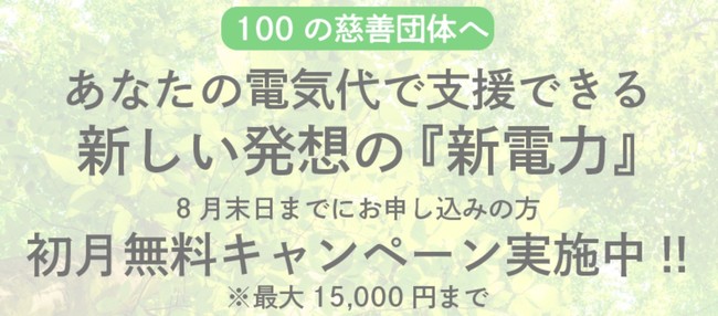 からの記事と詳細 ( 毎月の電気料金を社会活動に支援できる「エネルギーファンディング(R)︎」、支援先となる団体が100社を超えました。これを記念に、8月中お申込の方に限り、初月電気料金無料キャンペーンを実施いたします! - PR TIMES )