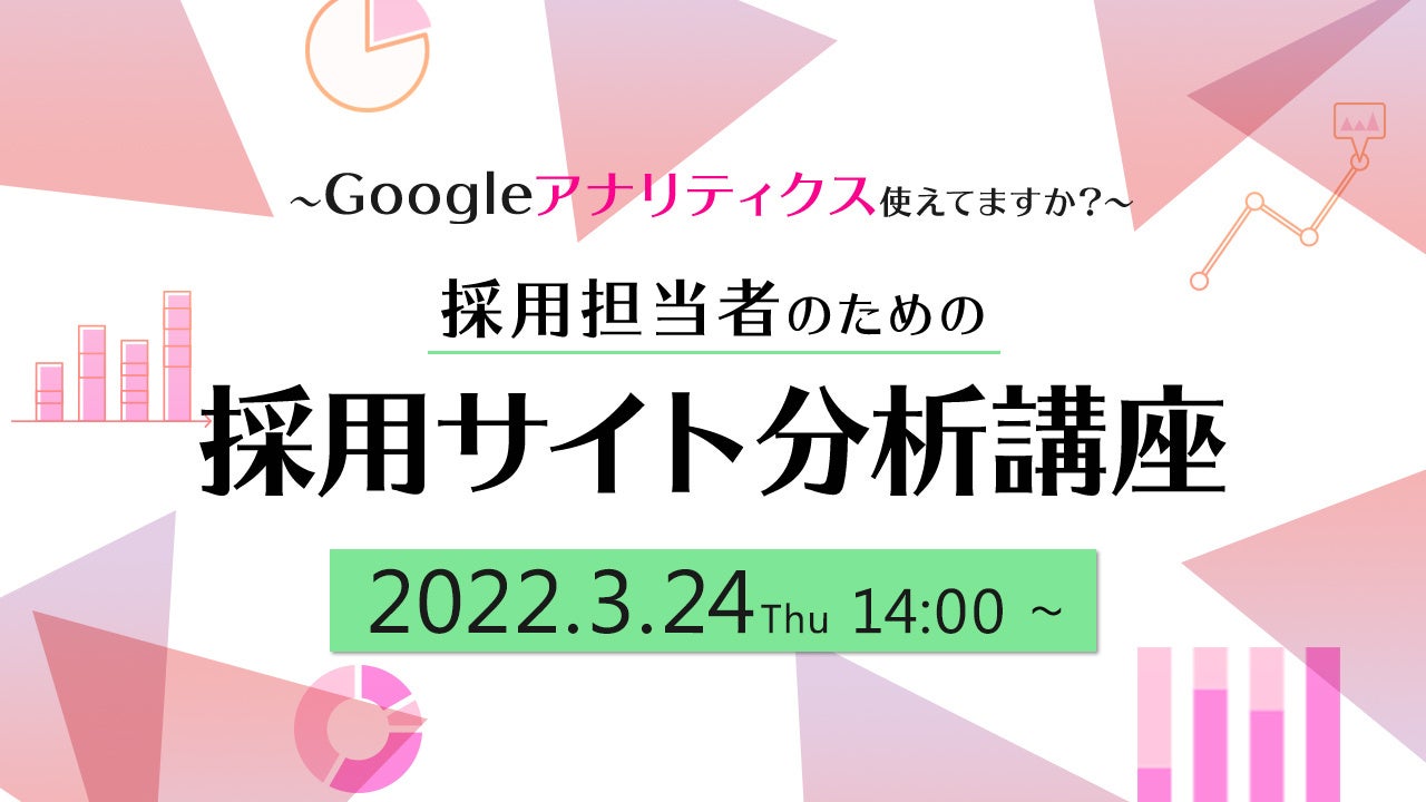 からの記事と詳細 ( 【採用サイト担当者向け】アクセス解析応用セミナー『採用担当者のための採用サイト分析講座~Googleアナリティクス使えてますか?~』開催 最新の求職者トレンドなども... - PR TIMES )
